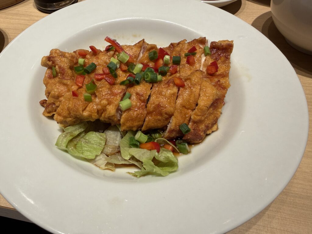 メイン料理の「油淋鶏定食(1,064円)」です。これにライスとスープがつきます。
