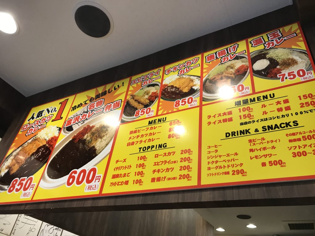 こちらがメニューになります。今回は唐揚げカレー(850円)にしました。