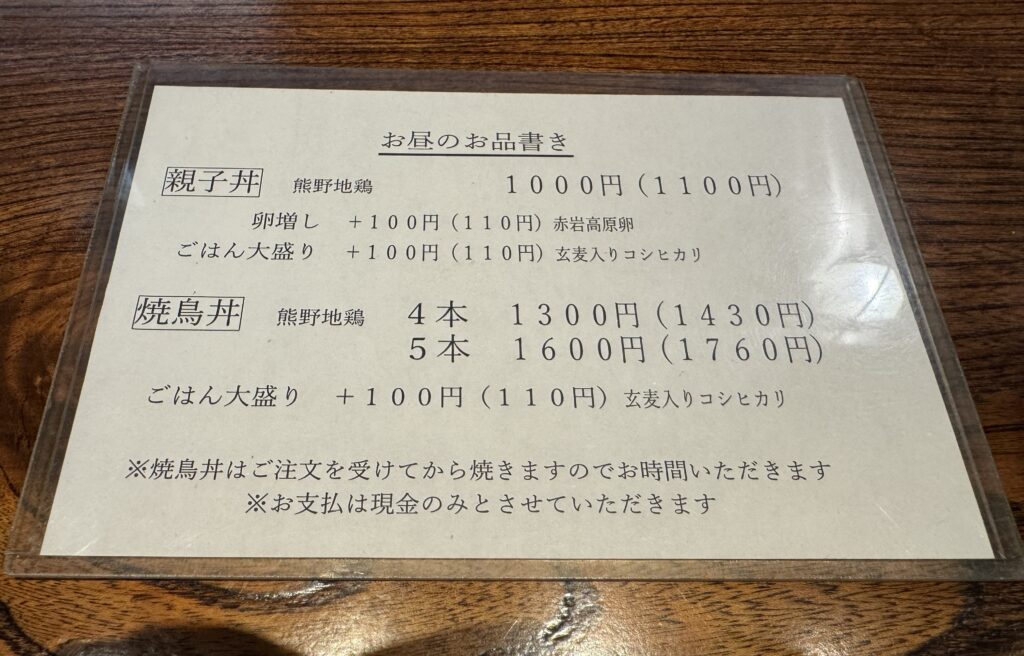 熊野地鶏という地鶏を使った焼き鳥丼ということで5本の焼き鳥丼を注文しました。