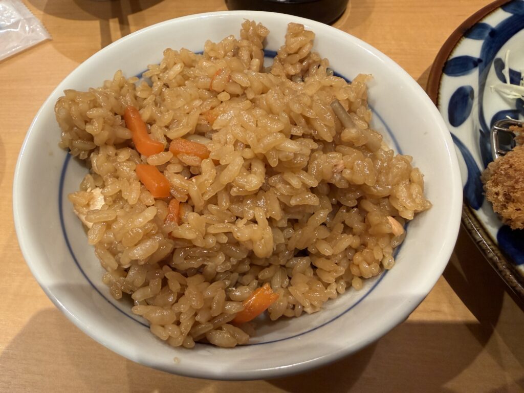 こちらは月替りの炊き込みご飯です。何が入っているか味が濃すぎで忘れました。