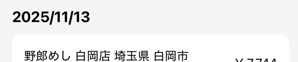 クレジットカード会社からの請求が「野郎めし 白岡店」になっていたのには驚きました。
